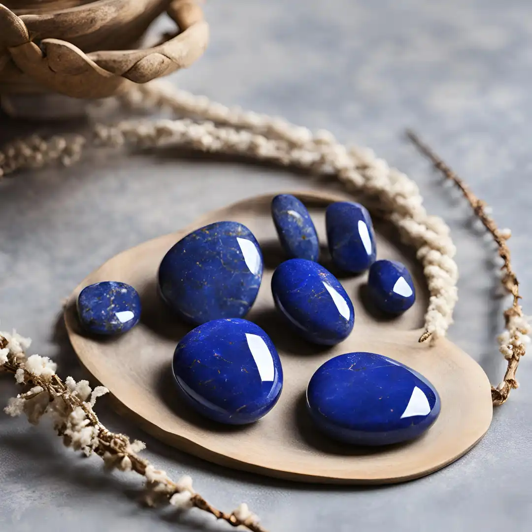 - Cristaux et bijoux : Colliers et bracelets en améthyste et lapis-lazuli.